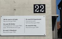 - Unser Eingang liegt direkt links neben dem Restaurant Riviera (siehe Fotos oben und rechts) und befindet sich im 2. Stock, über der Praxis von PD Dr. med. A. R. Fathi